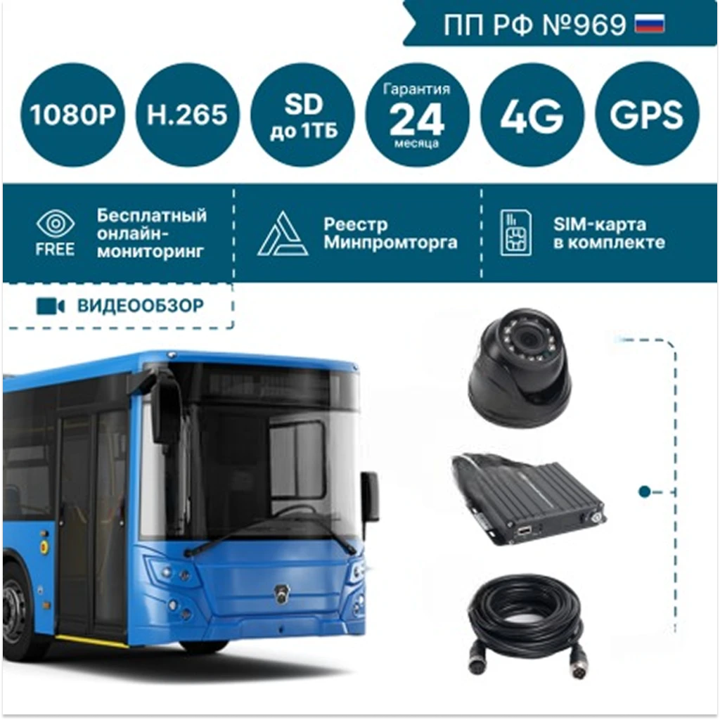 NSCAR BUS401: 4 FullHD_HDD камеры. Онлайн-мониторинг автобусов и коммерческого транспорта